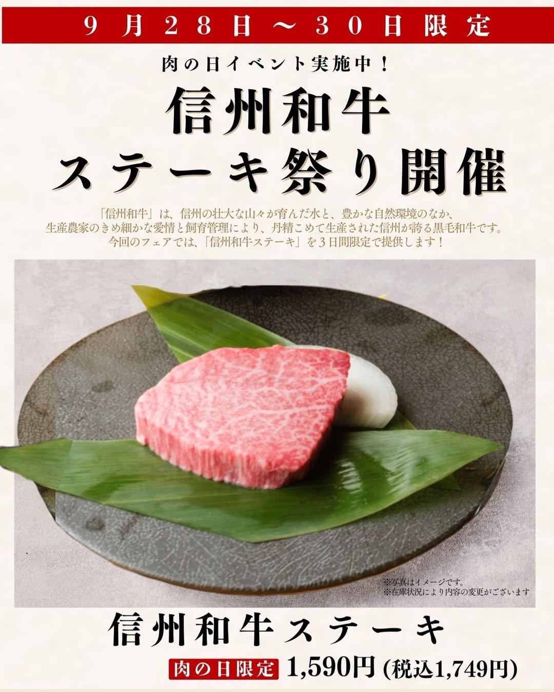 肉の日限定で、「信州和牛ステーキ」を販売いたします!
